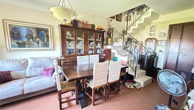 Al piano giorno troviamo una luminosa sala con annessa grande cucina abitabile che affaccia su balcone loggiato, bagno, con una scala in muratura saliamo al piano superiore dove troviamo la zona notte composta da un corridoio di disimpegno, 2 grandi camere matrimoniali di cui una con ampia loggia e bagno con vasca.